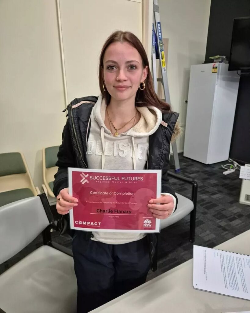 Every journey back into education or employment begins with a single step — and for Charlie, that first step was joining COMPACT’s Return to Work – Women & Girls Program. When she walked through our doors, she wasn’t sure where she belonged or what she wanted her future to look like. What she did know was that something needed to change.