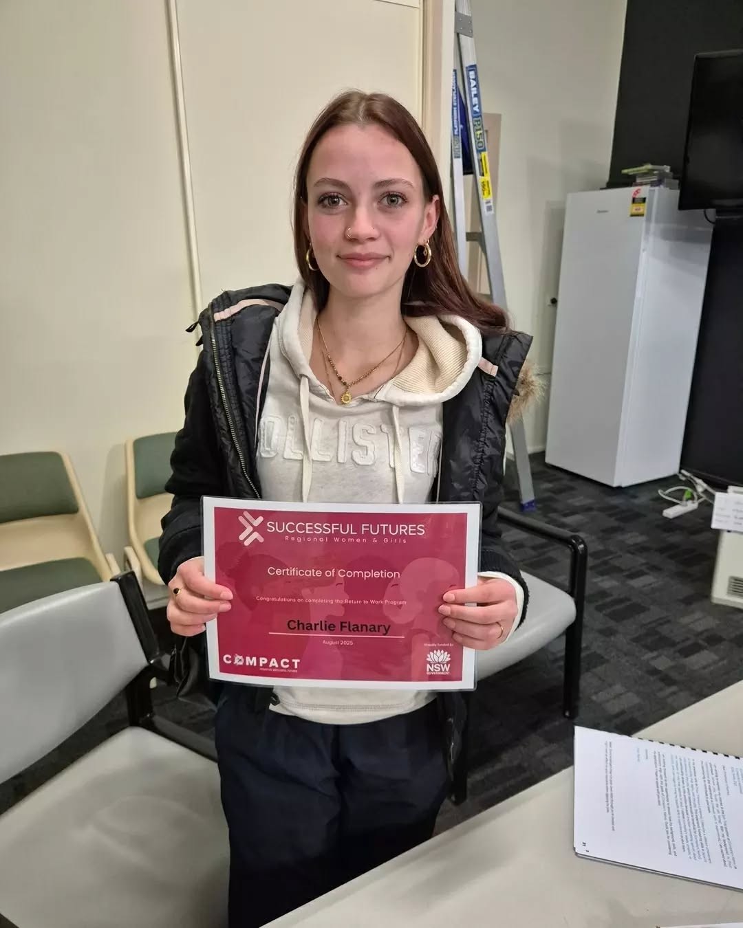 Success Story: How Charlie Found Her Confidence, Direction, and a Future in Community Services Every journey back into education or employment begins with a single step — and for Charlie, that first step was joining COMPACT’s Return to Work – Women & Girls Program. When she walked through our doors, she wasn’t sure where she belonged or what she wanted …